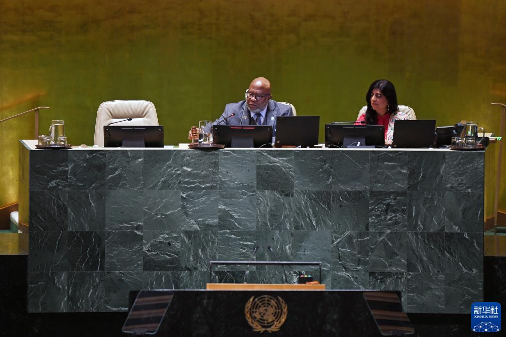 9月26日,在位于紐約的聯合國總部,第78屆聯大主席弗朗西斯(左)宣布聯合國大會一般性辯論閉幕。