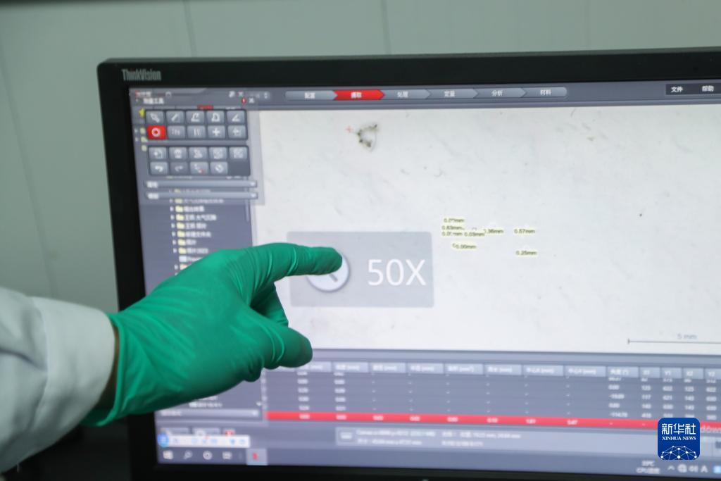 9月14日,武蓉和同學(xué)們用顯微鏡觀測水樣中的微塑料。