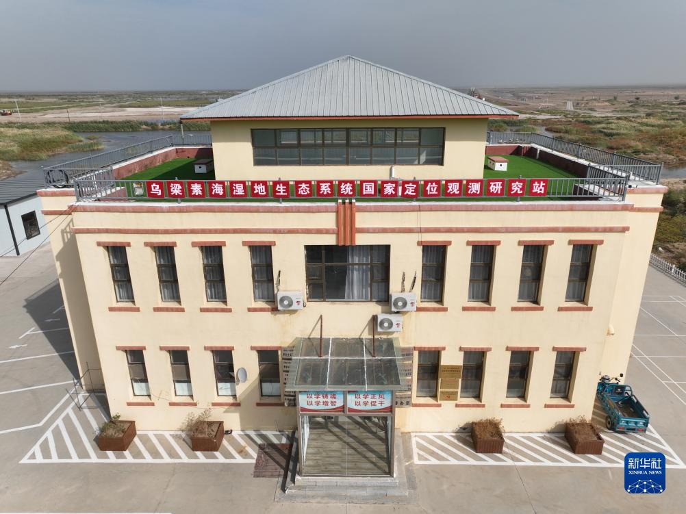 這是位于烏梁素海邊的濕地生態(tài)系統(tǒng)國家定位觀測研究站(無人機照片,9月14日攝)。