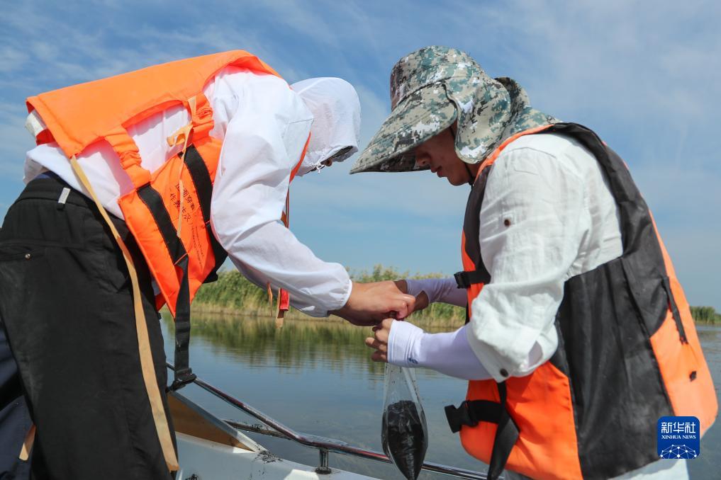 每半個月,武蓉和其他團隊成員就要“上湖”一次,乘坐快艇去收集多達25個點位的水樣、泥樣,檢測點位水質用于分析。總面積達300平方公里的烏梁素海,一次“上湖”就要一天,午飯也只能在湖心島上吃自熱米飯。一天的采樣工作下來,同學們的手都被水泡脫了皮。但是武蓉和同學們并不覺得苦,武蓉說:“烏梁素海作為河套灌區重要的濕地湖泊,監測和修復湖泊水質和水生態尤為重要。我們的工作能為湖泊的治理提供堅實的基礎資料,這就是意義所在。”