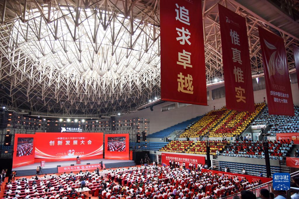 9月27日拍攝的中國石油大學(xué)(華東)建校70周年創(chuàng)新發(fā)展大會現(xiàn)場。