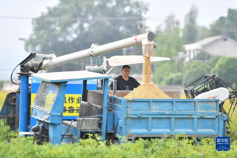金秋時(shí)節(jié),湖南省瀏陽(yáng)市沿溪鎮(zhèn)種植的中稻迎來(lái)收獲季,當(dāng)?shù)剞r(nóng)民搶抓農(nóng)時(shí)收割水稻,稻田里一派繁忙景象。
