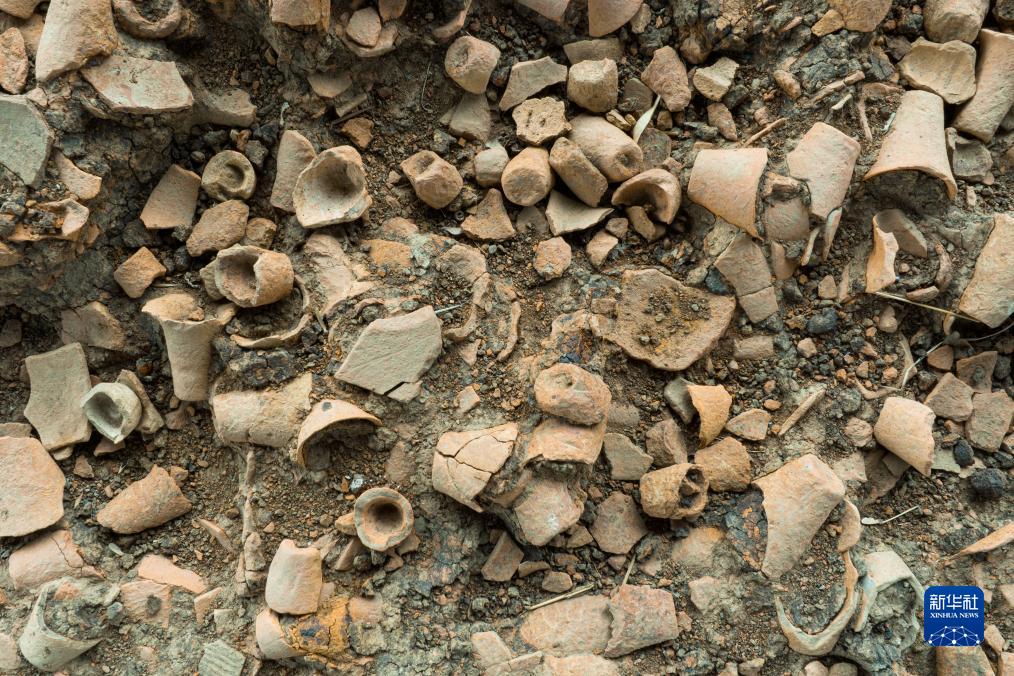 9月27日拍攝的石家河三房灣遺址出土的紅陶杯(無人機照片)。