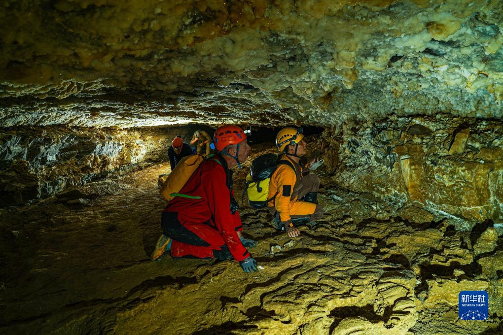 意大利專家和貴州省山地資源研究所科考隊(duì)員在雙河洞一處支洞中進(jìn)行科考(9月22日攝)。