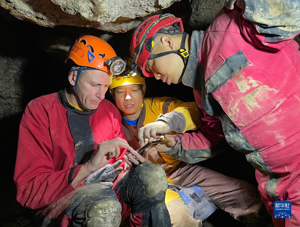 中外科考人員在貴州省雙河洞內(nèi)開展科考(9月24日攝)。
