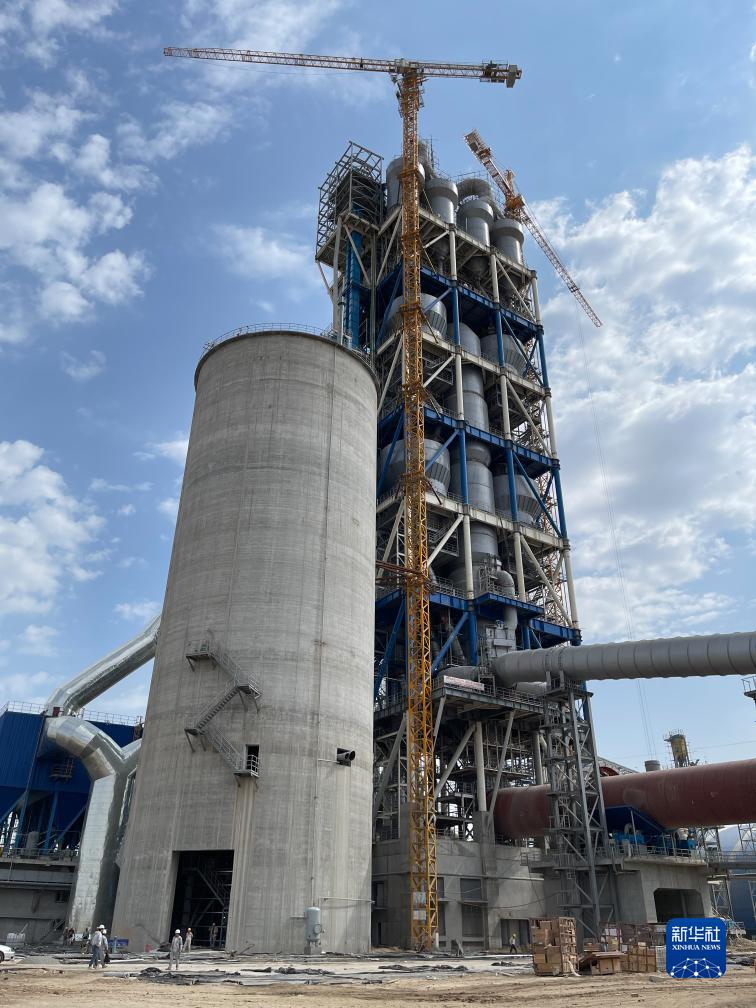 這是9月16日在烏茲別克斯坦撒馬爾罕州拍攝的水泥生產線項目預熱器。