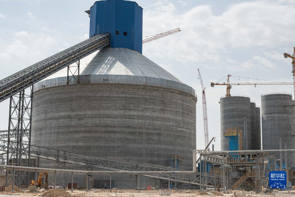 這是9月16日在烏茲別克斯坦撒馬爾罕州拍攝的水泥生產線項目熟料庫。