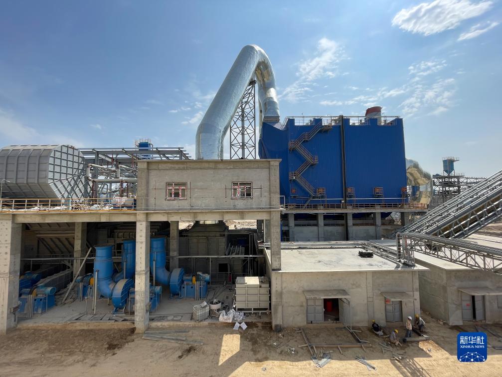 這是9月16日在烏茲別克斯坦撒馬爾罕州拍攝的水泥生產線項目現場。