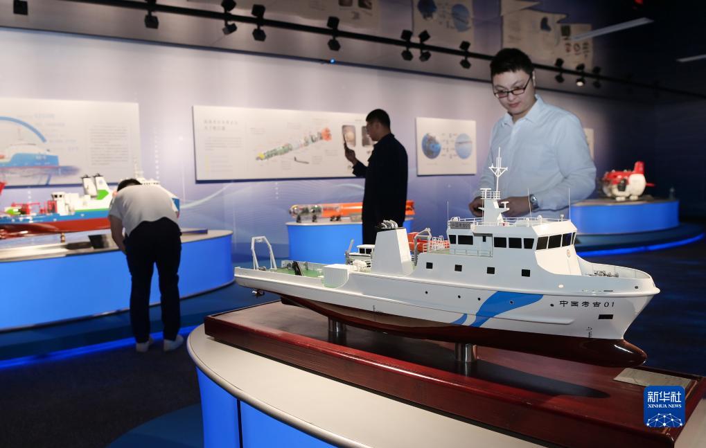 9月27日,觀眾在展廳參觀供海洋考古使用的船只模型。