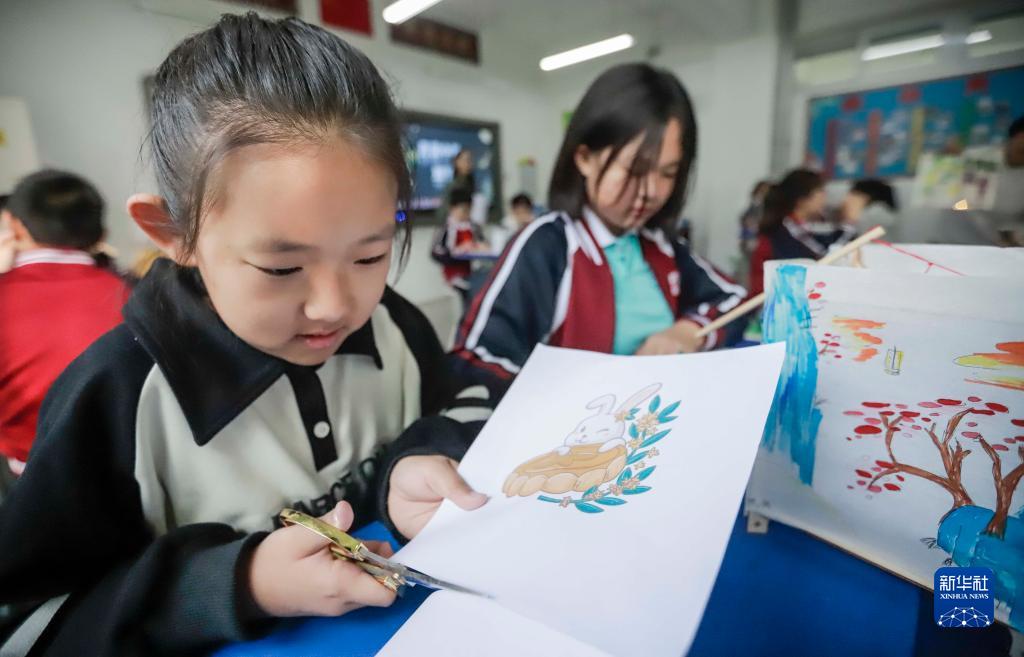 9月27日,河北省遵化市第六實驗小學的學生在制作中秋燈籠。