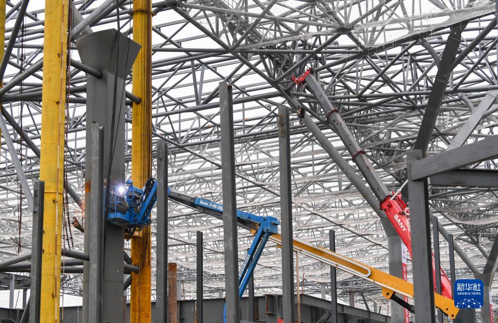 9月27日,中鐵建工工人在重慶東站站房及配套綜合交通樞紐工程二標段項目作業。