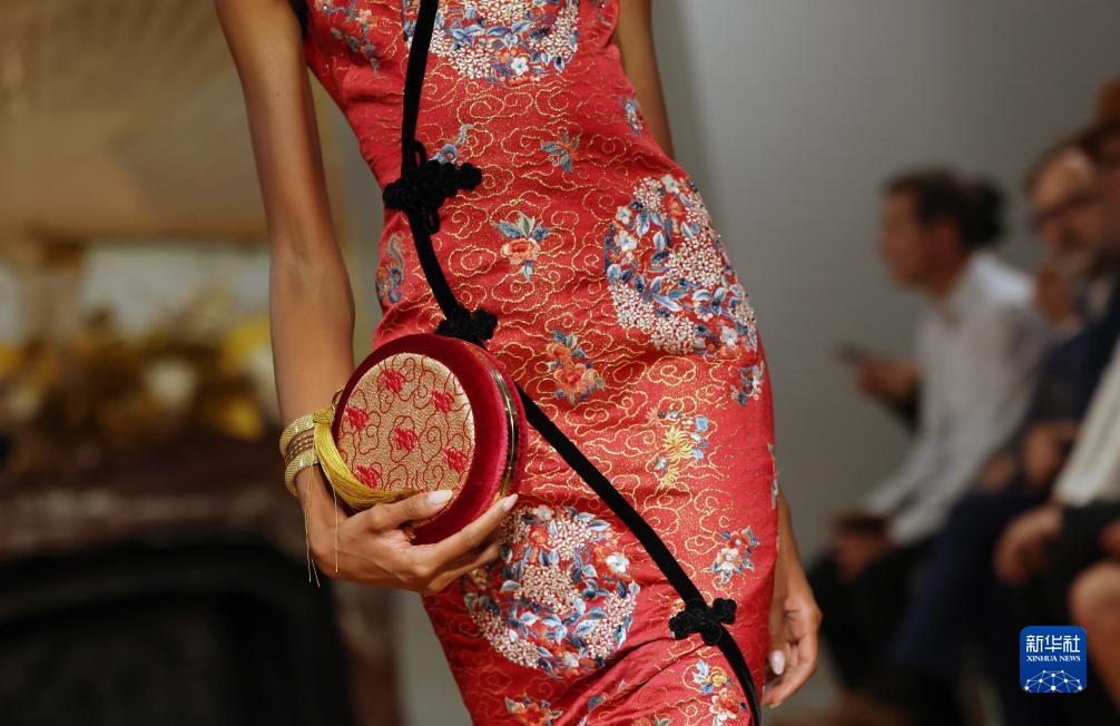 9月27日,模特在法國(guó)巴黎中國(guó)文化中心舉辦的“恭王府服飾秀”上展示設(shè)計(jì)師勞倫斯·許創(chuàng)作的恭王府系列高定服裝。