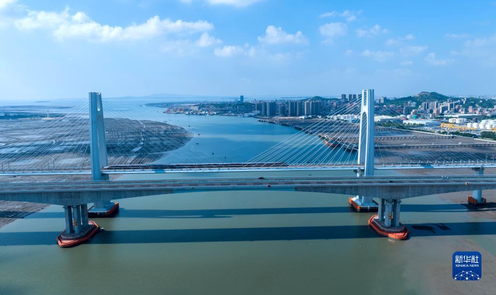 一列復興號智能配置動車組駛過福廈高鐵安海灣跨海大橋(9月19日攝,無人機照片)。