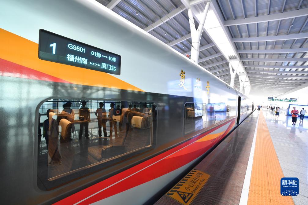 9月28日上午9時15分,福廈高鐵首趟復興號智能動車組G9801次列車從福州南站緩緩開出,一路南下,奔向廈門北站。這標志著中國首條時速350公里跨海高鐵——福廈高鐵正式開通運營。福廈高鐵北起福州,途經莆田、泉州,南至廈門和漳州,全長277公里。開通后,福州至廈門的列車運行時間將從現在的2小時左右縮短至1小時以內,兩地間形成“一小時生活圈”。