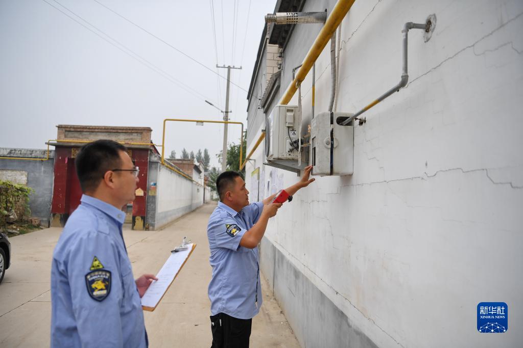 9月27日,工作人員在遭受洪水影響的河北保定高碑店市潘家營(yíng)村查驗(yàn)燃?xì)庠O(shè)備運(yùn)行情況。