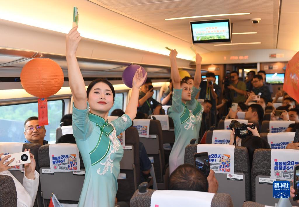 9月28日,南京客運段乘務員在首發G7799次列車上表演節目。