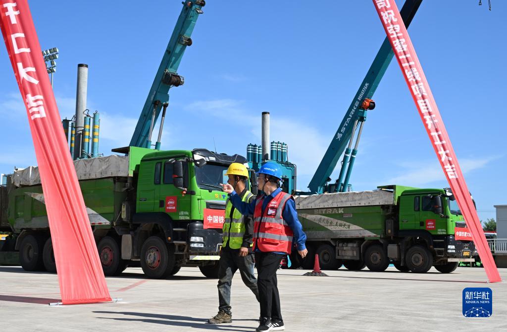 9月28日,工作人員在空客天津第二條總裝線項目開工現場查看設備準備情況。