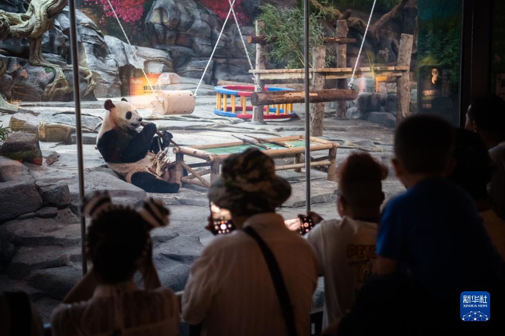 9月28日,游客在武漢動物園觀看大熊貓“武林”。