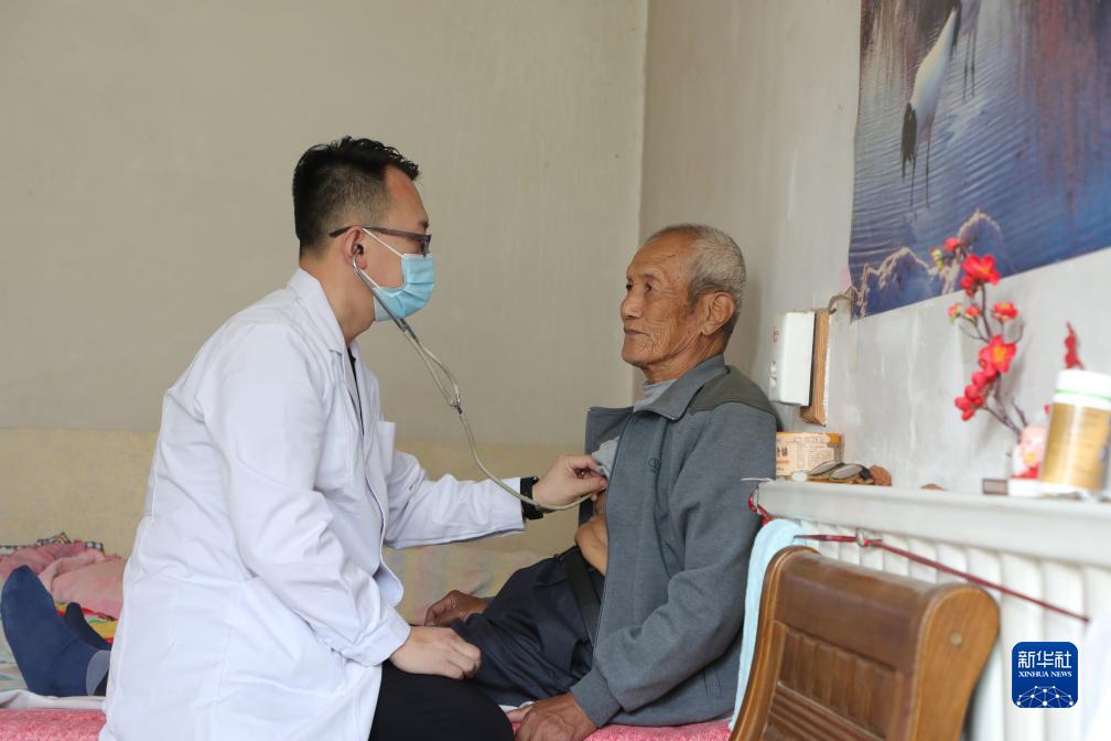 9月28日,保定市徐水區(qū)義聯(lián)莊鄉(xiāng)衛(wèi)生院家庭醫(yī)生在崔莊村入戶為村民檢查身體。