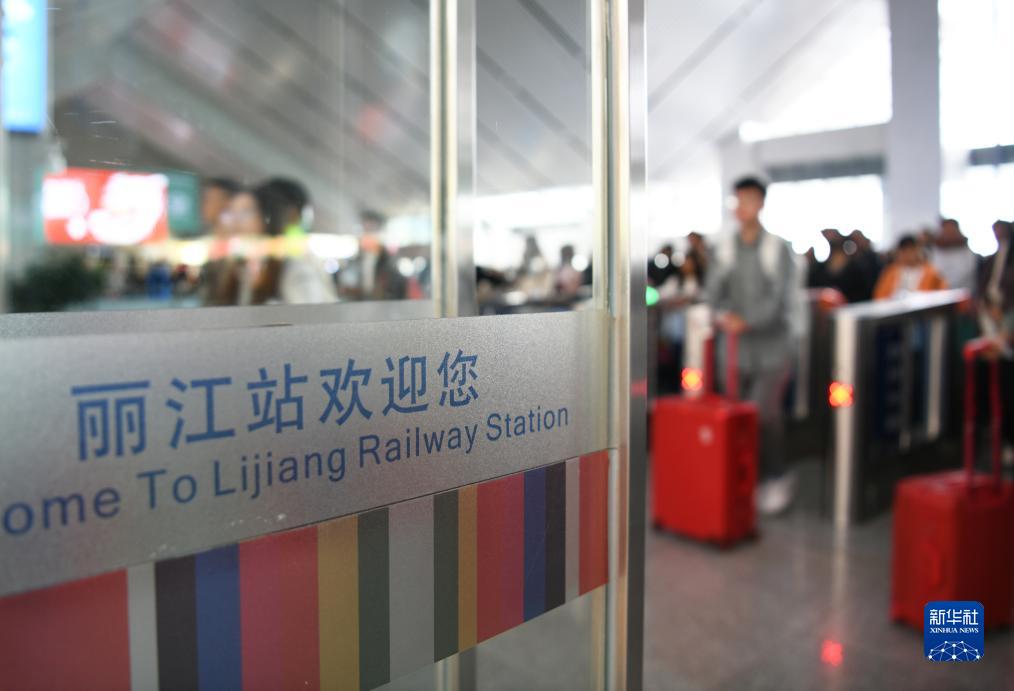 9月28日,旅客在云南麗江火車站通過閘機進站乘車。