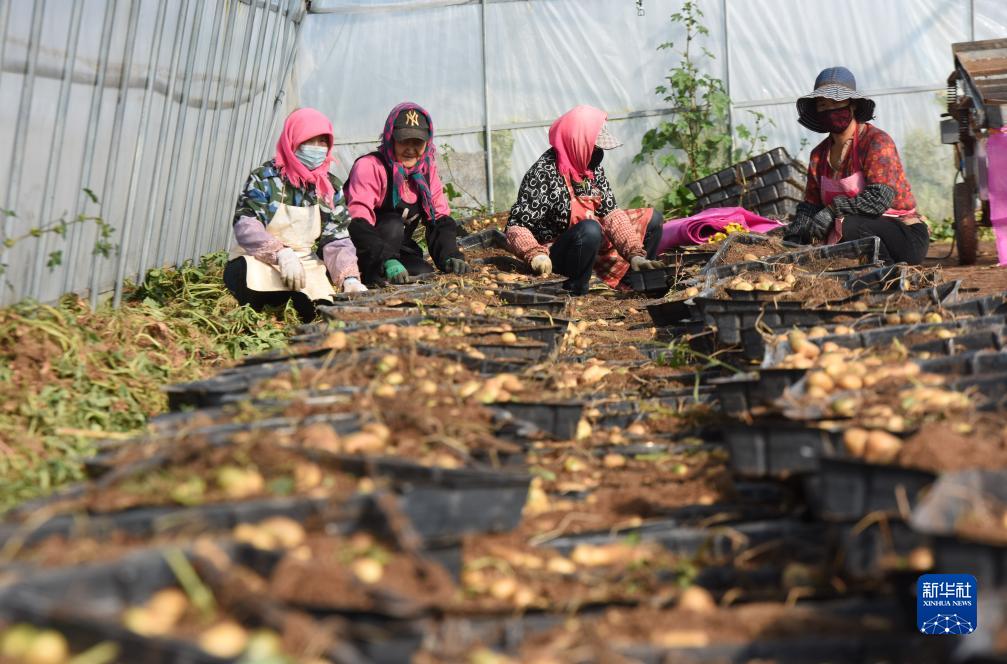 9月29日,當(dāng)?shù)剞r(nóng)民在收獲馬鈴薯原原種。