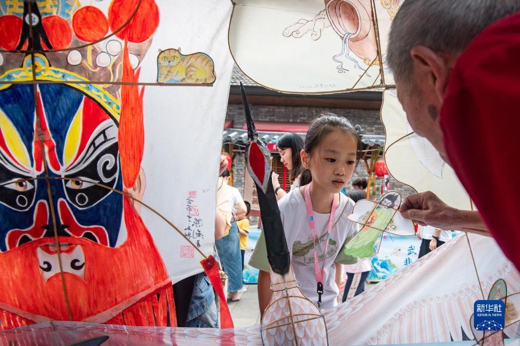 9月29日,一名小朋友在湖北省武漢市武昌區非遺“技·憶”節活動現場欣賞篾扎風箏。