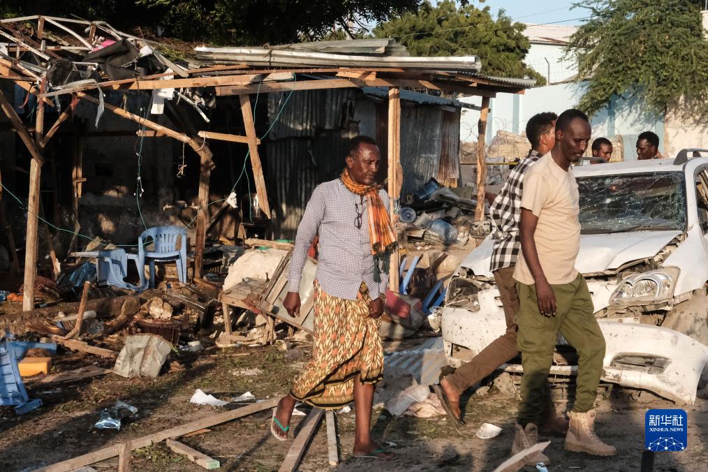 9月29日,人們聚集在索馬里首都摩加迪沙自殺式炸彈襲擊現場。