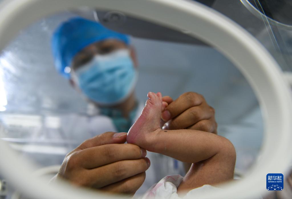9月30日,在湖南省永州市道縣人民醫(yī)院新生兒科,醫(yī)務(wù)人員在給新生兒做護(hù)理。