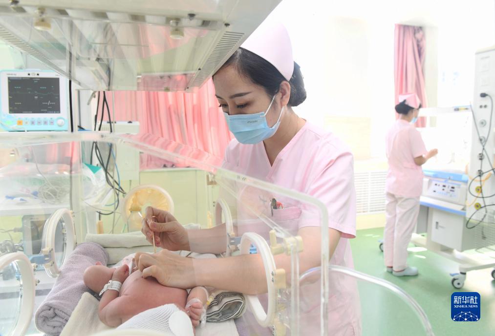 9月30日,河北省新樂市醫(yī)院新生兒科護(hù)士在護(hù)理新生兒。