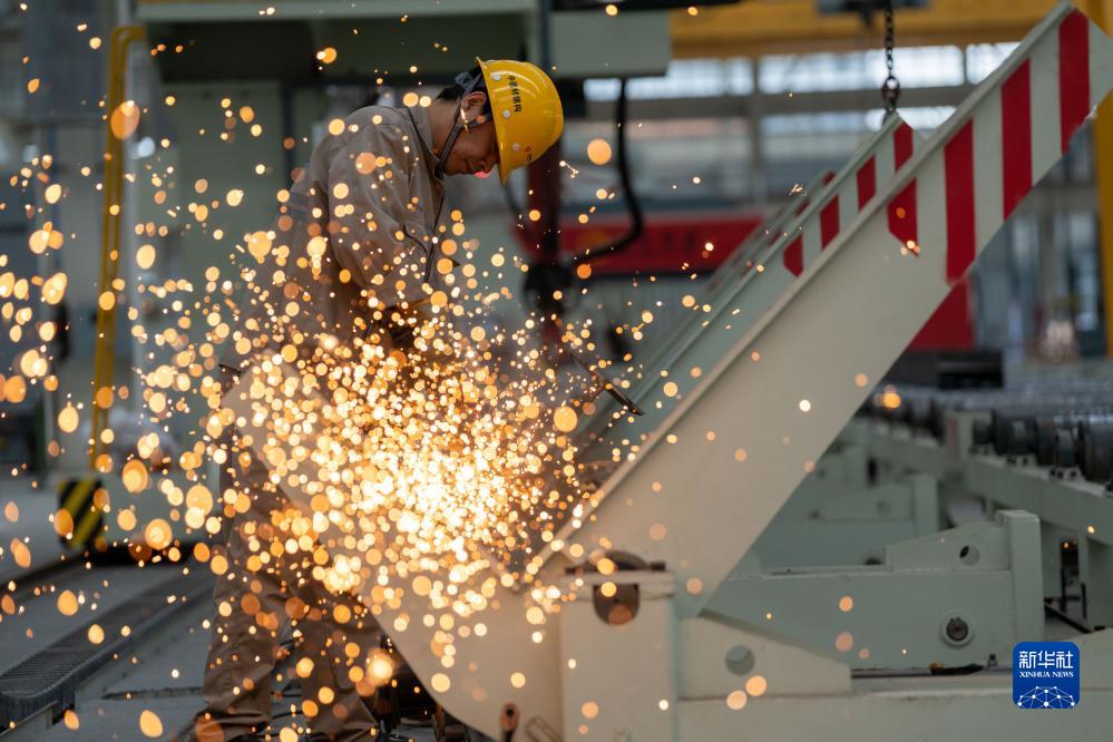 9月30日,安徽省合肥市肥東縣合肥循環經濟示范園中建材鋼構生產車間內,工人在打磨鋼構產品。