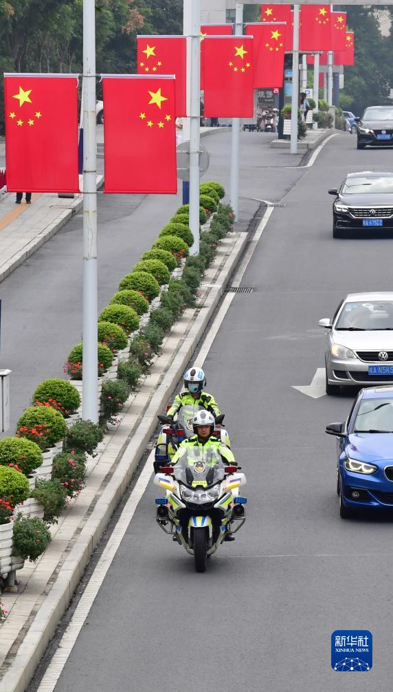 9月30日,在安徽省合肥市,交警蜀山大隊鐵騎中隊在南一環(huán)開展路面巡查,守護(hù)市民假期平安出行。