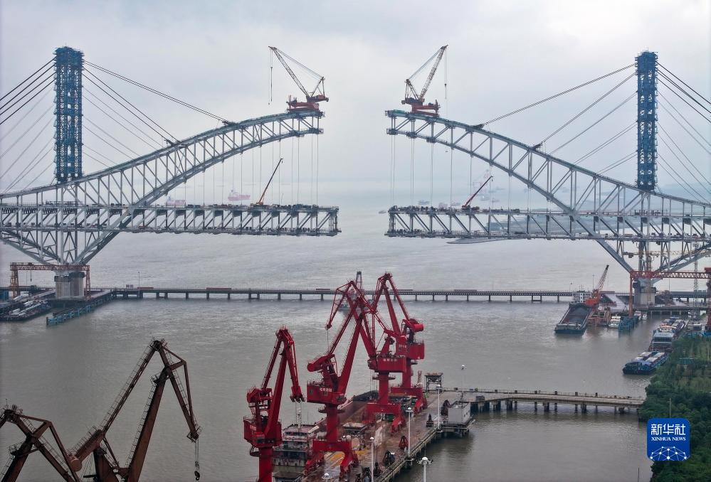 9月30日,中交二航局工人在位于江蘇省泰州市的常泰長江大橋建設項目工地作業(yè)(無人機照片)。