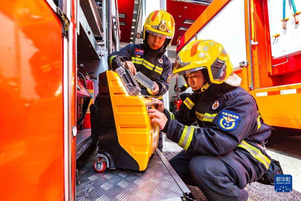 9月30日,消防救援人員在貴州省安順經(jīng)濟(jì)技術(shù)開發(fā)區(qū)消防救援大隊(duì)檢查裝備。