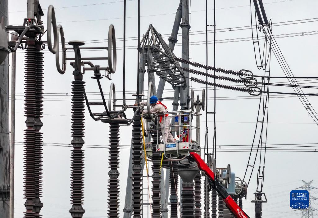 9月30日,電力人員在江蘇省泰州市500千伏泰興變電站檢修現(xiàn)場對設備進行檢修作業(yè)(無人機照片)。