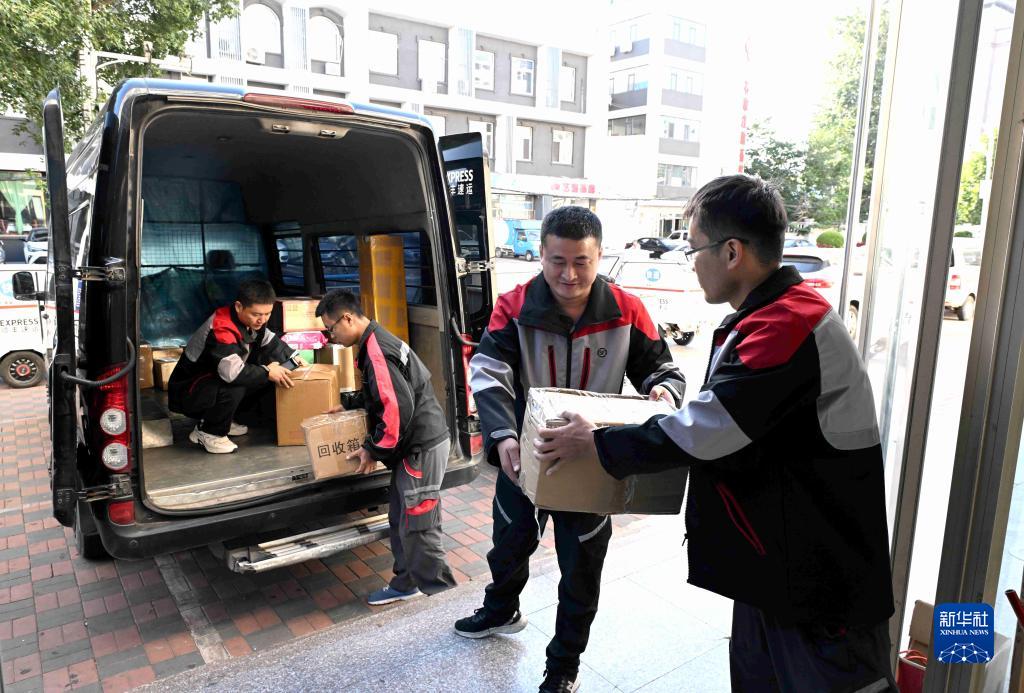 9月30日,快遞員在石家莊市新華區一家快遞網點分揀包裹。