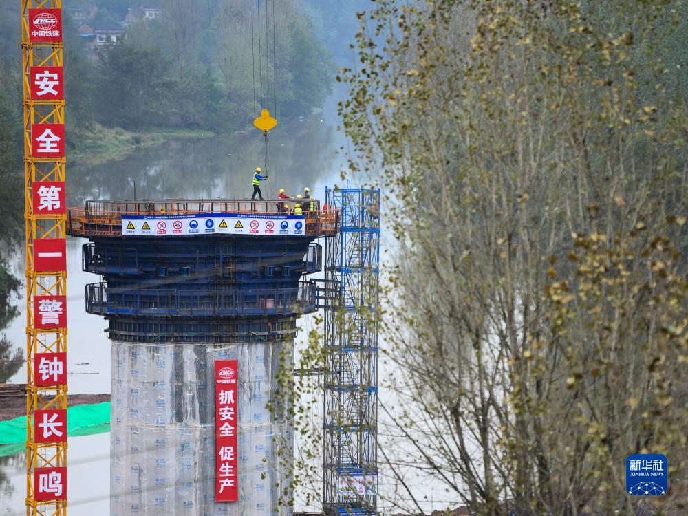 9月30日,在位于四川省達州市境內的成達萬高鐵建設現場,中鐵十一局的工人在施工。