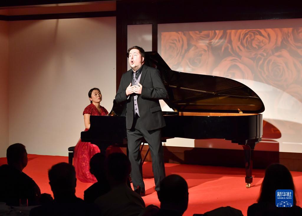 9月29日,在德國漢堡豫園,演員在中秋晚會上歌唱。
