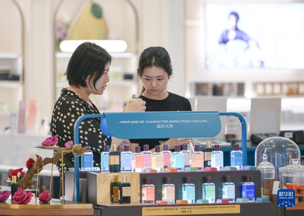 9月29日,消費者在中免集團海口日月廣場免稅店選購商品。