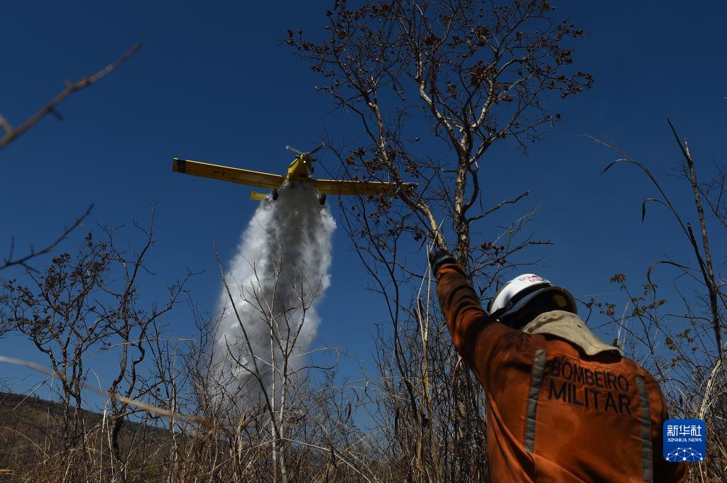 9月22日,一架飛機在巴西巴伊亞州里亞尚-達斯內維斯附近進行滅火作業。