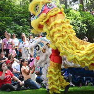 9月29日,在墨西哥首都墨西哥城,表演者在中秋文化活動中進行舞獅表演。