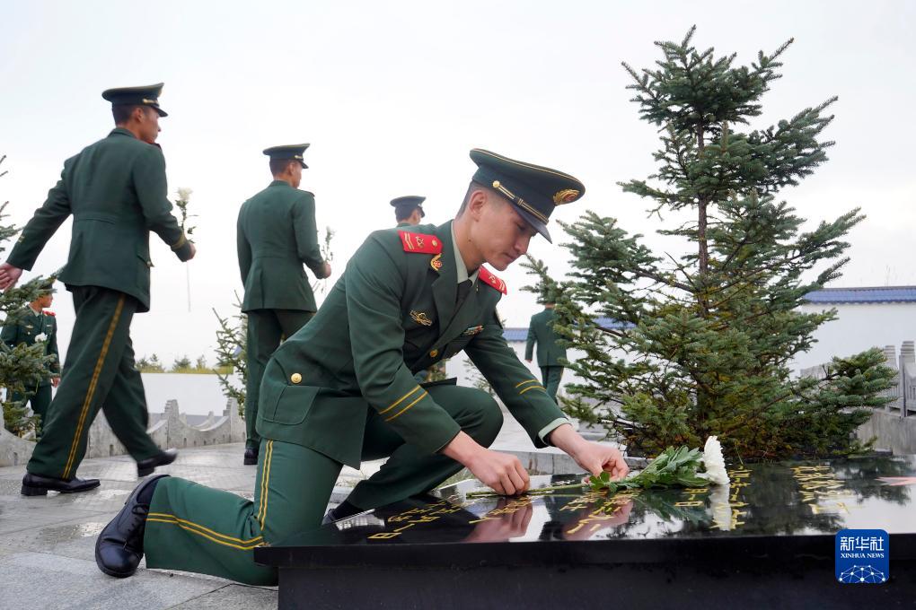 9月30日,武警青海總隊(duì)海北支隊(duì)組織官兵前往海晏縣烈士陵園祭掃先烈。