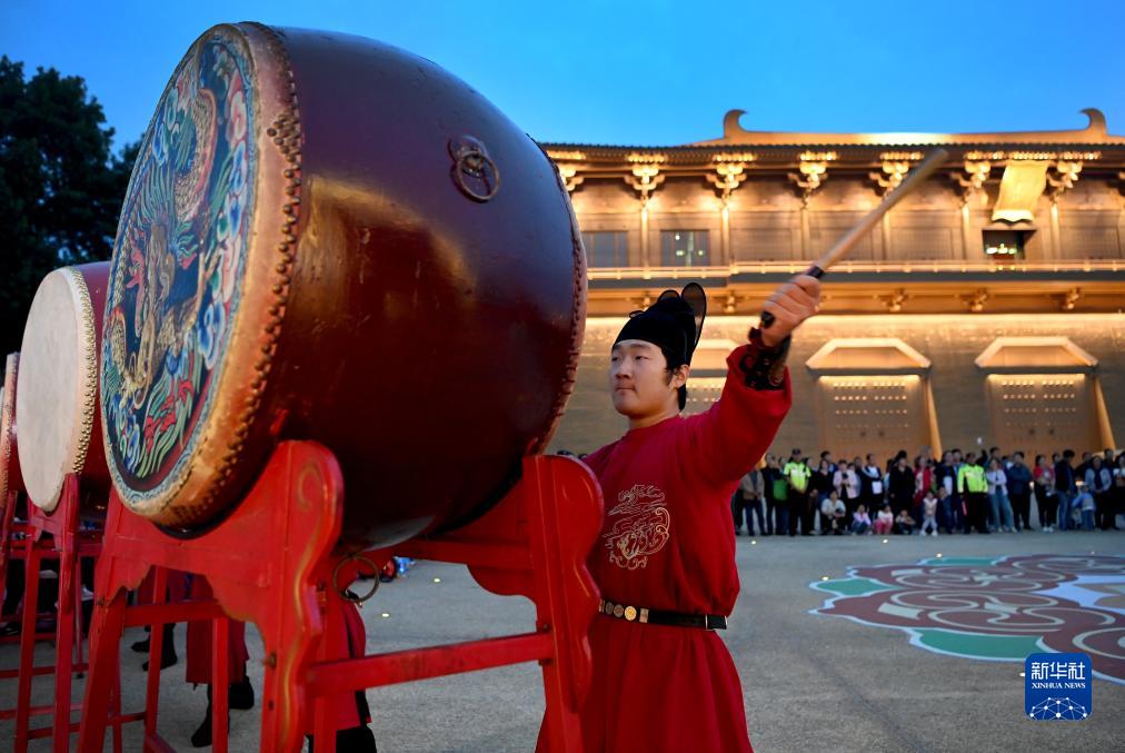 西安大明宮國家遺址公園丹鳳門前進(jìn)行的唐風(fēng)演出(9月30日攝)。