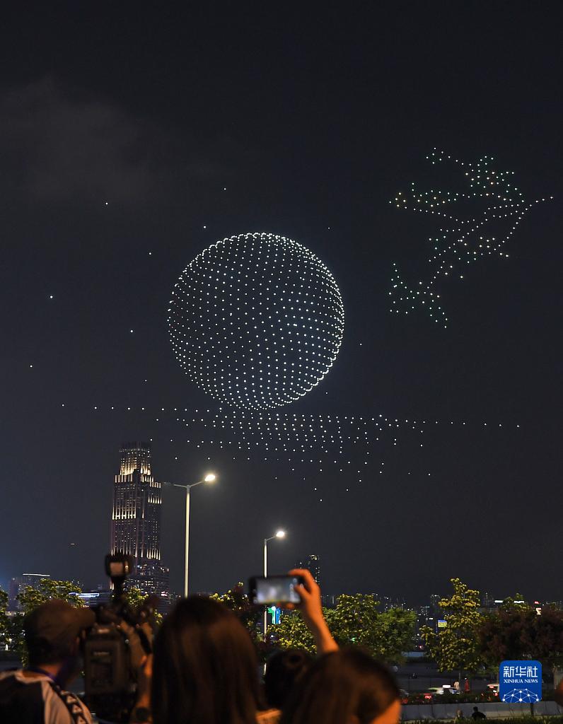 9月30日,無人機在維港上空拼成“海上升明月”造型。