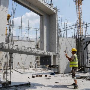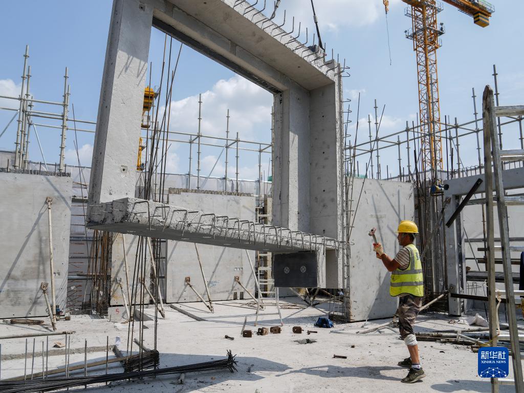 10月1日,工人在位于上海的中建三局一公司華東公司某建設工地施工。
