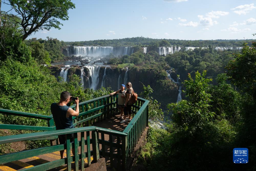 10月1日,游客在巴西巴拉那州伊瓜蘇大瀑布景區內參觀。