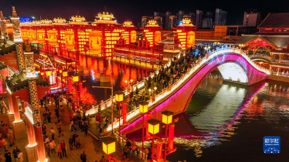 當日是國慶節(jié),河北省唐山市豐南區(qū)河頭老街景區(qū)燈光璀璨,流光溢彩,市民和游客紛紛前來賞景、游玩,歡度佳節(jié)。
