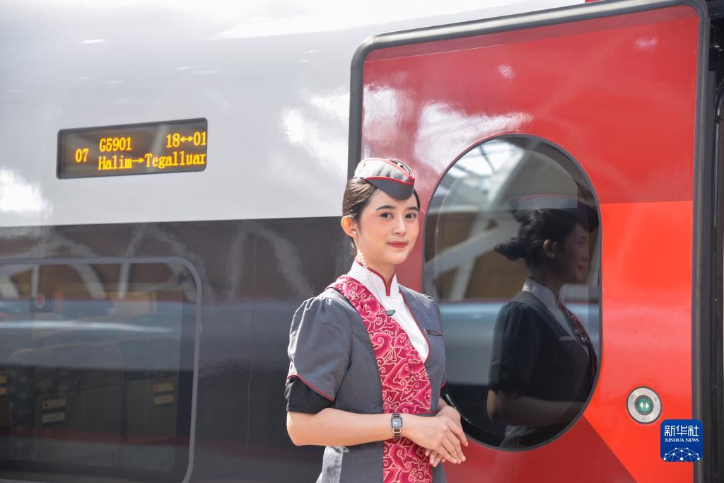 10月2日,在印度尼西亞雅加達(dá)哈利姆高鐵站,乘務(wù)人員歡迎乘客和嘉賓。