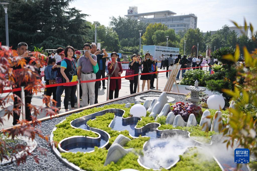 10月2日,市民和游客在石家莊市首屆園林“微景觀”制作大賽成果展上參觀。