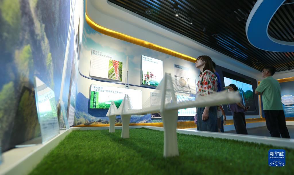 10月2日,游客在貴州省平塘縣“天空之橋”觀光服務(wù)區(qū)橋梁科普館參觀,了解平塘特大橋建設(shè)過(guò)程。