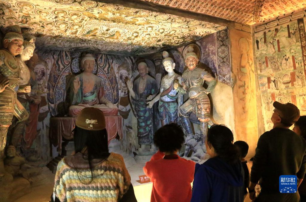 10月2日,游客在甘肅省敦煌市博物館參觀。